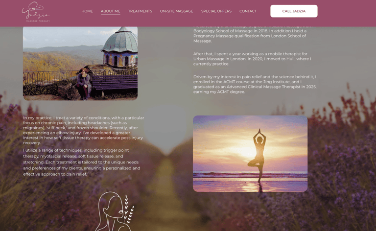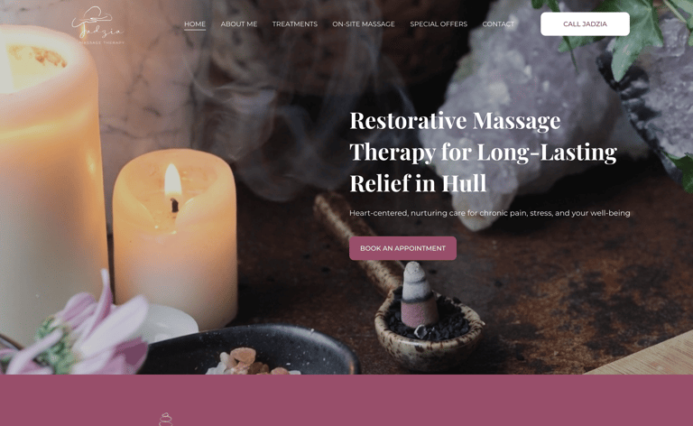 Jadzia Massage Therapy offers heart-centered, professional massage services in Hull, specializing in long-lasting relief from chronic pain, stress, headaches, and muscular tension through a blend of advanced clinical techniques and nurturing care. The practice provides both in-clinic and on-site treatments, catering to individuals and groups seeking holistic wellness, with a focus on empowering clients through personalized self-care guidance and actionable tips to maintain comfort and well-being between sessions.